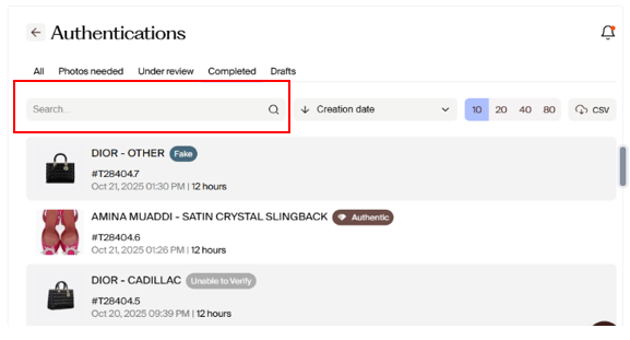 You can also select the number of orders you want to see per ranging from "10, 20, 40 and 80".