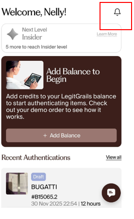 Mobile Version: To see notifications in your account, tap on the bell icon.