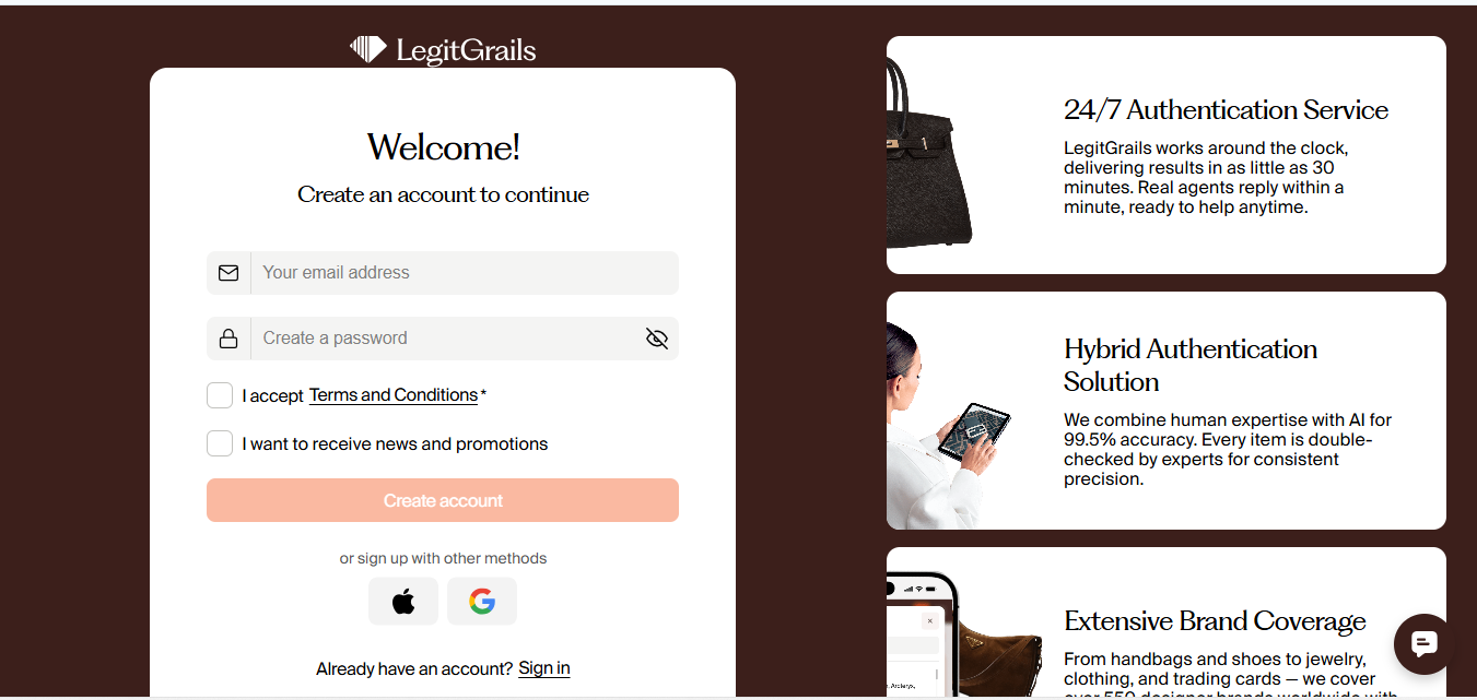 Proceed to the sign-in screen to log into your account for the first time at https://account.legitgrails.com/signin