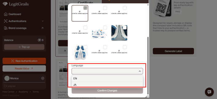 You can also change your certificate language from English to Japanese or Japanese to English.